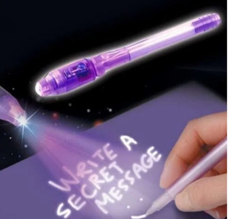 Invisible ink pen/cheating pen with UV light, multicolor (1 piece)
